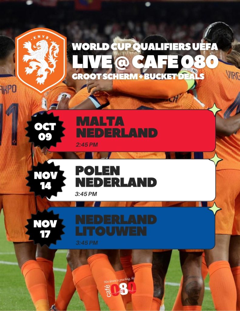 - Alle onderstaande wedstrijden van Oranje op groot scherm op ons terras!